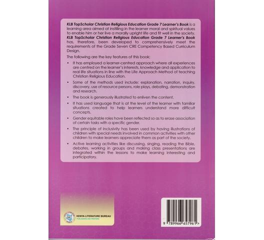 KLB TopScholar Christian Religious Education Grade 7 Learner’s Book is a learning area aimed at instilling in the learner moral and spiritual values to enable him or her live a morally upright life and fit weil in the society. KLB TopScholar Christian Religious Education Grade 7 Learner’s Book has, therefore, been developed to comprehensively meet the requirements of the Grade Seven CRE Competency Based Curniculum Design.